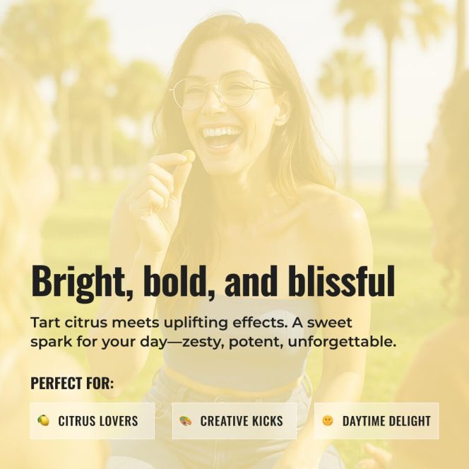 Designed for those who want their relaxation served with a citrusy spark, each bite starts with an invigorating rush of creativity before mellowing into a smooth, stress-free glide.