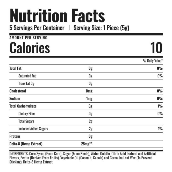- Stronger Delta-8 Dose: 25mg for experienced users